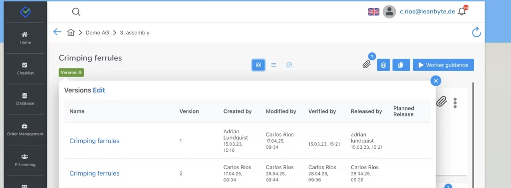 Work instructions are a key tool for stable, safe, and efficient processes in everyday operations. They translate overarching processes and procedural instructions into concrete, executable steps, thereby creating clarity for employees directly at their workplace. Well-structured and practically developed work instructions reduce errors, ensure quality, accelerate training time, and at the same time enable continuous improvement through standardized, traceable work.