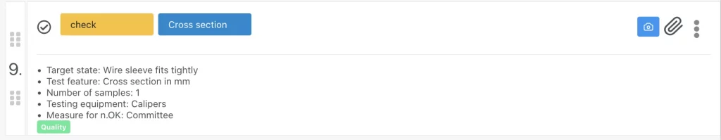 • Quality Control Checks: Detail inspections, measurements, or standards to be met as the task is performed.