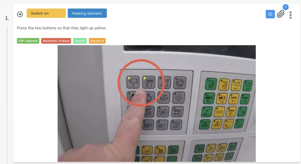 Keep instructions concise and use active verbs (e.g., “Press – green button,” not “The button should be pressed”). Avoid ambiguity, technical jargon, or overloaded steps